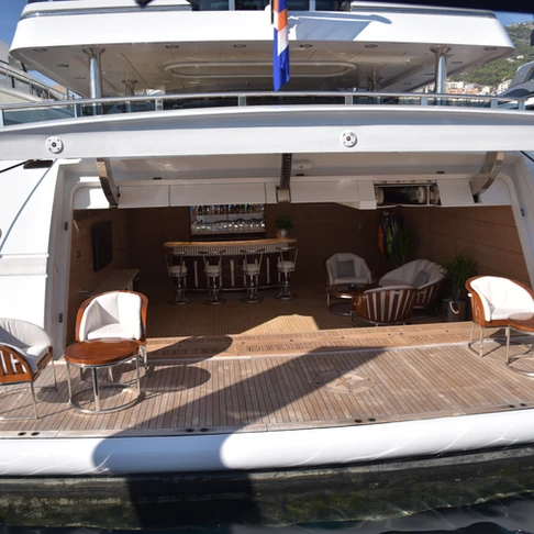 The focus on exclusive materials like onyx in the bathrooms and the meticulous design selection demonstrate the clear commitment to creating something unique. Frederiken enthusiastically describes the yacht’s attention to detail and meticulous restoration. The deck, which has been extended by 6 meters, offers more space for outdoor relaxation, including a beach club that immerses guests in a luxurious atmosphere.